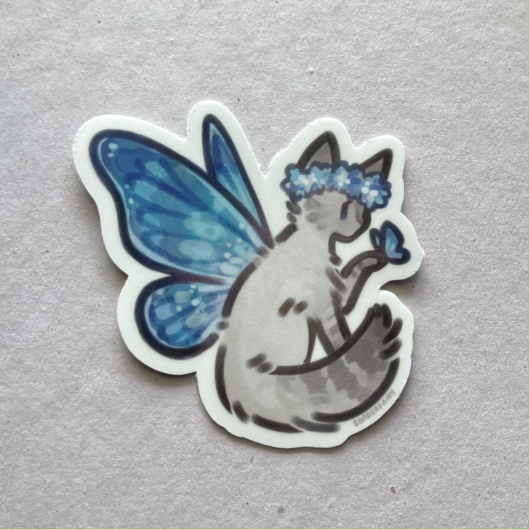An elegant fairy/butterfly kitty to stick on your laptop, water bottle, or wherever you want.